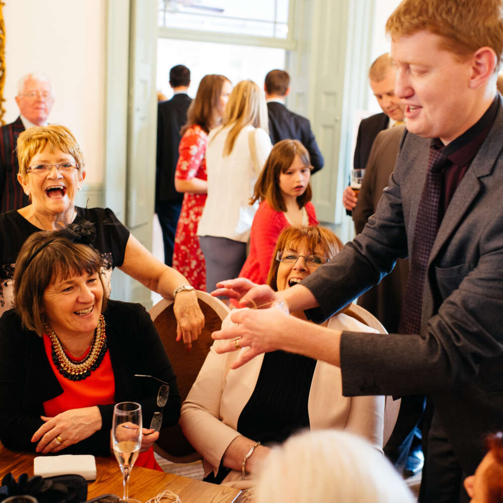 "A quick witted and captivating magician. Damian's sleight of hand antics and ginger charm wowed and enthralled all my guests."
